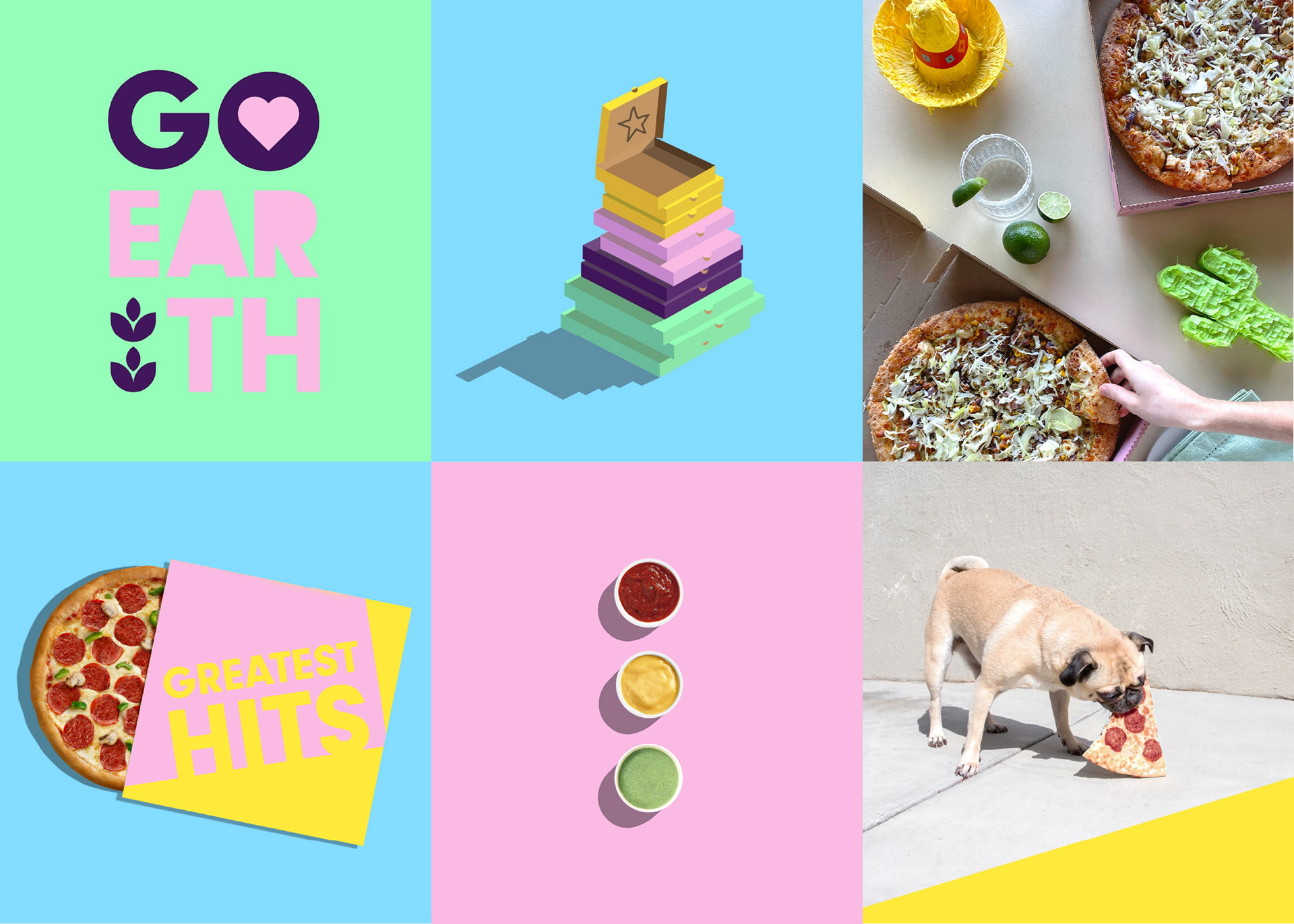 Elements of the brand evolution: a pizza company working to make better choices easy, for their customers and the planet. Creating big joy through small moments.